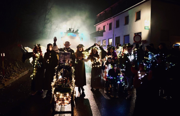 Punkt 19.11 Uhr setzte sich am Donnerstagabend (12. Februar 2026) in Hoxel nahe Morbach der große Karnevalsnachtumzug in Bewegung - und verwandelte die Straßen des Ortes in ein funkelndes Lichtermeer. Bereits zum 22. Mal zog der närrische Lindwurm durch den Hunsrückort und durfte damit eine ganz besondere Schnapszahl feiern. Was folgte, war ein Spektakel aus Musik, Lichteffekten und ausgelassener Stimmung, das rund 5.000 Zuschauer:innen anlockte.